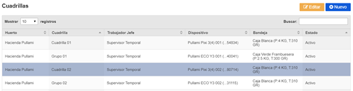 2.- Seleccionar la cuadrilla y presionar el botón Editar