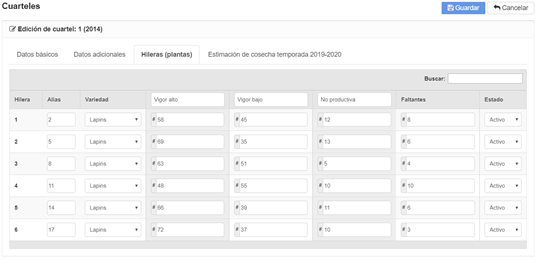 - Superficie: ingresa la superficie del cuartel en hectáreas